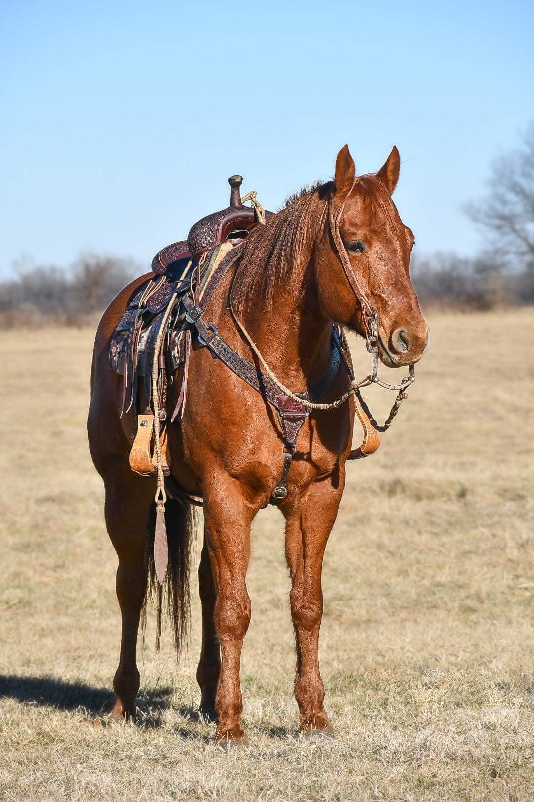 Rocky is a nice shapey gelding that would fit into anyones program! Rocky has a resume a mile long and the sweetest disposition. He has been used outside for all ranch duties; pasture roped and doctored, tag calves, drug hundreds to the fire, gathered, and sorted pairs. He has been taken through rocky terrain and thick brush. Rocky has trail ridden countless miles and goes where you point him. He has been used to pony race horses on the race track. He has been hauled to chuckwagon races and ranch rodeos. Not much phases this guy. He stands 15.2hh and 1300lbs. He is 8 years old and grade.