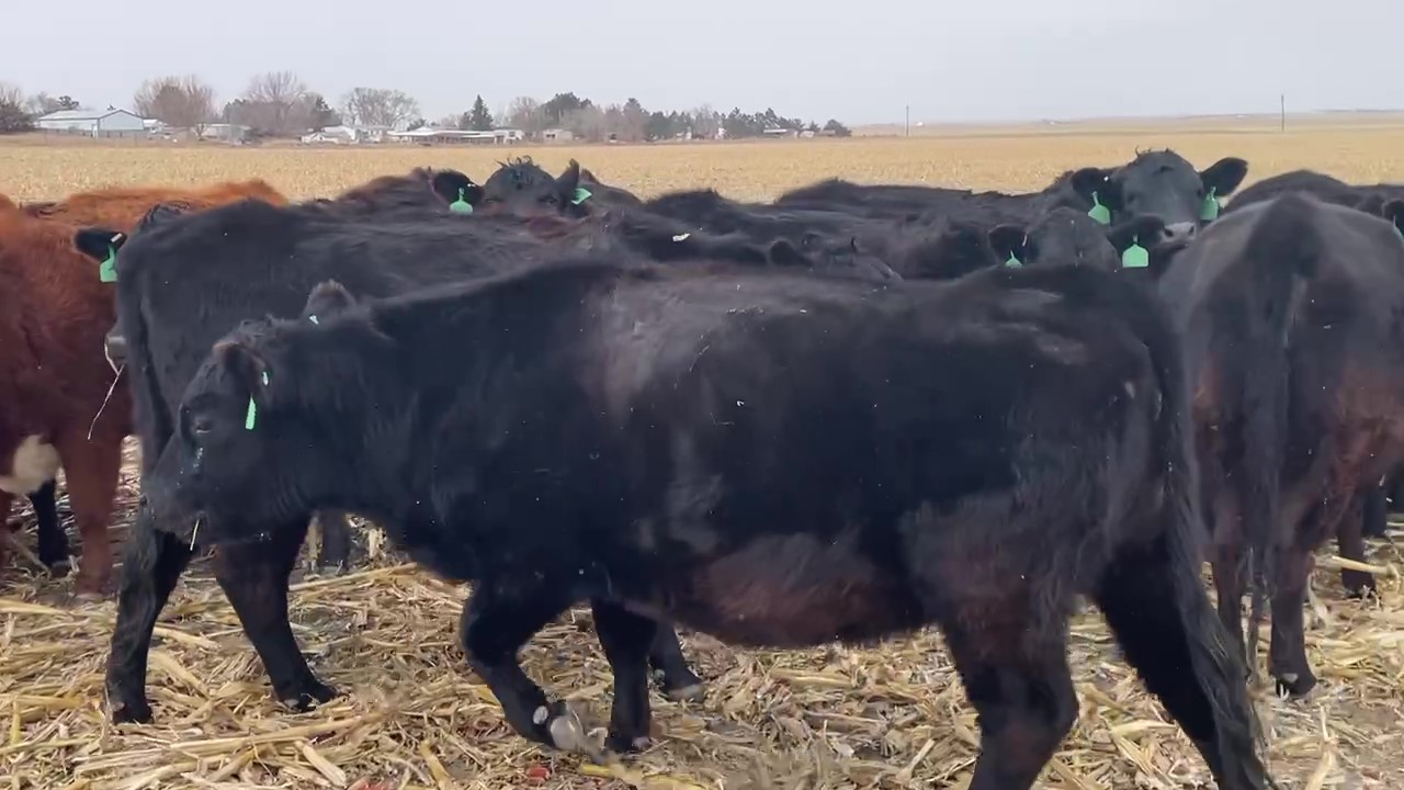 All home raised and calved out as heifers, a real honest set of bred coming 3’s, Grazing cornstalks since Nov and feeding 1lb of cake per head per day. All hot wire and cake broke. Only selling the black/black baldies off to reduce numbers as he retained his heifer calves.