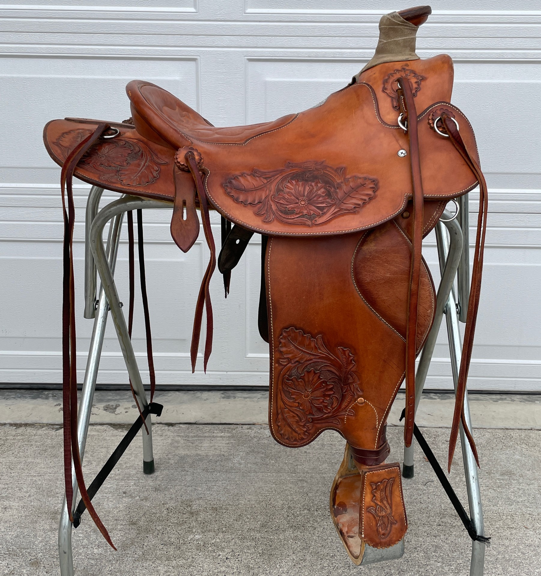 Saddles for Sale: 15" Floral Carved Doug Cox Saddle SOLD #147332