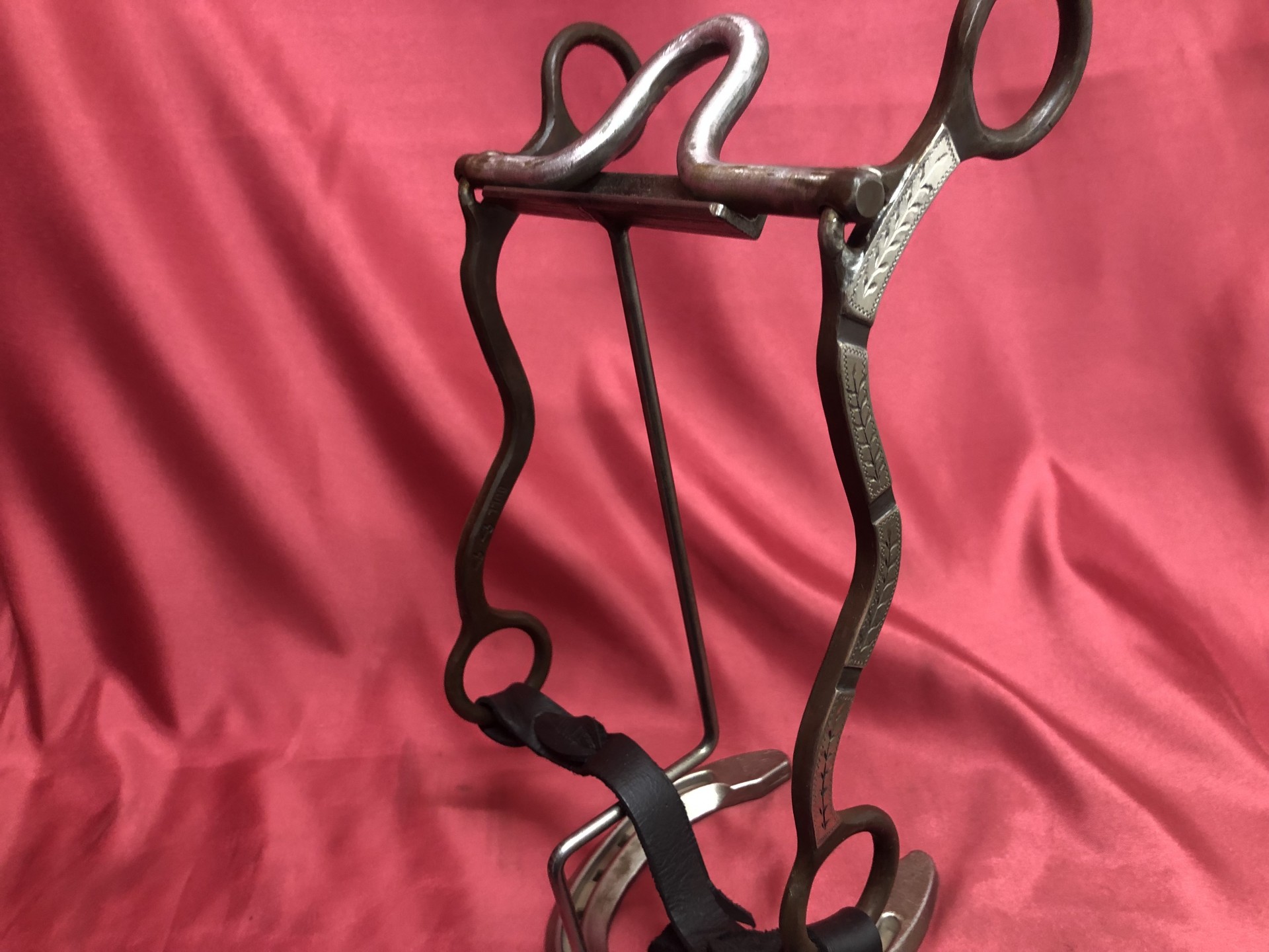BULL marked staple bit by noted maker Bull Parker. His bits are used in and out of the arena by some of the worlds top horsemen. This one features 8 14" cheeks and 5 1/4" mouth. We pay shipping within the 48 states and accept most forms of payment.