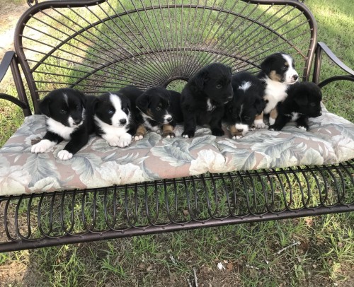Seven pups in litter. 4 males & 1 female left. Mom is 1/2 Aussie/Lab, dad is full Aussie tri-colored w/ blue eyes. Both are great farm dogs. Pups will be ready for pickup by end of April. Please use number on listing for more information. (ONLY TWO LEFT)