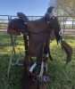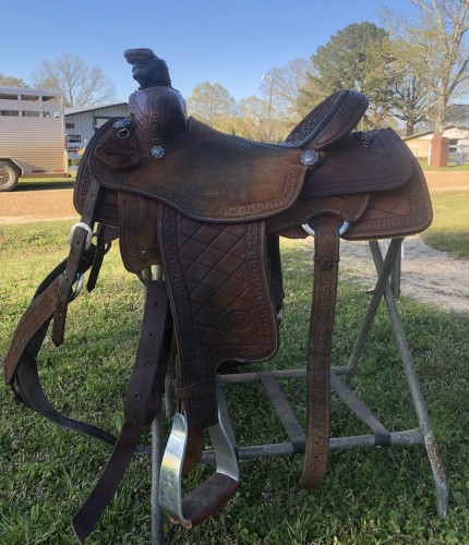 Len Brown Ugly Betty Roping saddle 14.5” seat. It comes with matching breast collar and corrector saddle pad with adjustable shims to customize fit. Saddle is in great shape. It has been cleaned, oiled and polished on a yearly basis since new. It has a Black mesa tree with 7.75” gullet. Shipping will be additional $50. Payments accepted through PayPal, Venmo or certified check.