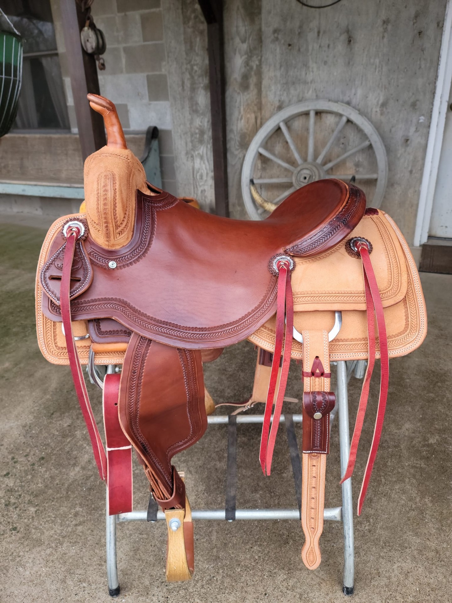 New 16" custom Paul Taylor cutter, Herman Oak n real wool, reverse run with smooth seat, jockeys n fenders, roughout skirts n pommels, border tooled, deep pocket, close contact, pre turn fenders for broke in feel!