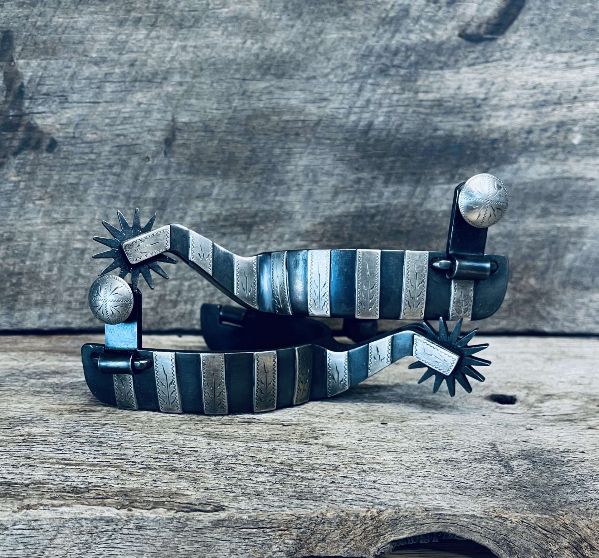Handmade LW Dixon Spurs. 1" Cupped bands to fit your boots like a glove. 2” 78 shank, 14 pt 1 1/4” rowel