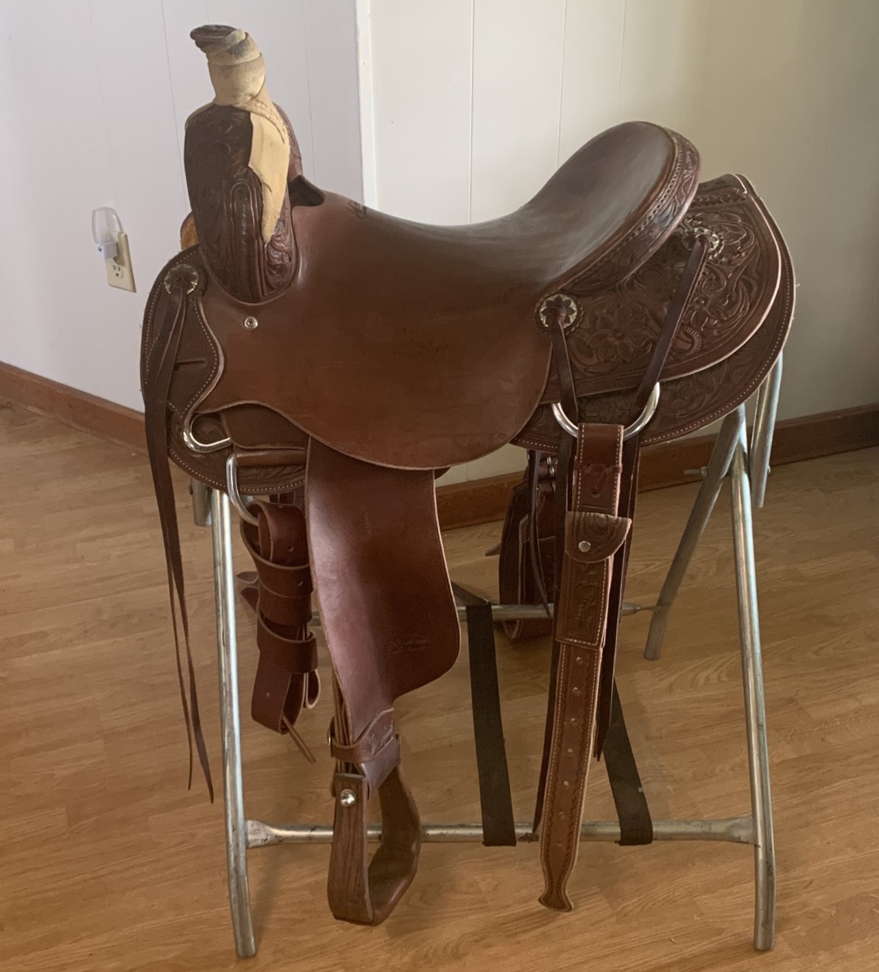 16” Jeff Smith Ranch Cutter, only ridden a handful of times. Sits a horse well. Shorter shirts for younger and shorter backed horses.