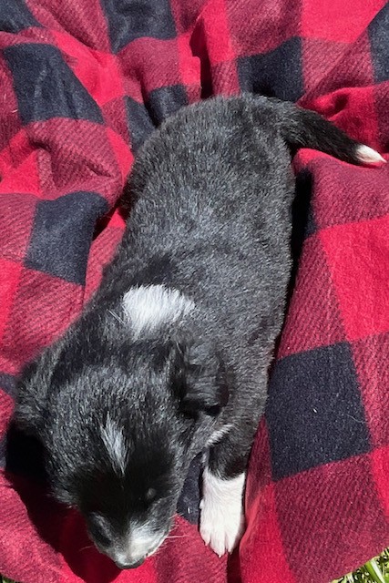 is smart, loyal and able to be trained to whatever need your family would like. They are also amazing ranch dogs that enjoy working livestock of any breed and age. Both parents are on site here at our small family ranch. If you need more details about the individual puppies, call 913-416-0091 or 913-416-0155. Two female and 5 available. One male is blue Merle with blue eyes, all others are black and white with various markings. Ready for their forever homes. They have their first round of shots and dewormer.