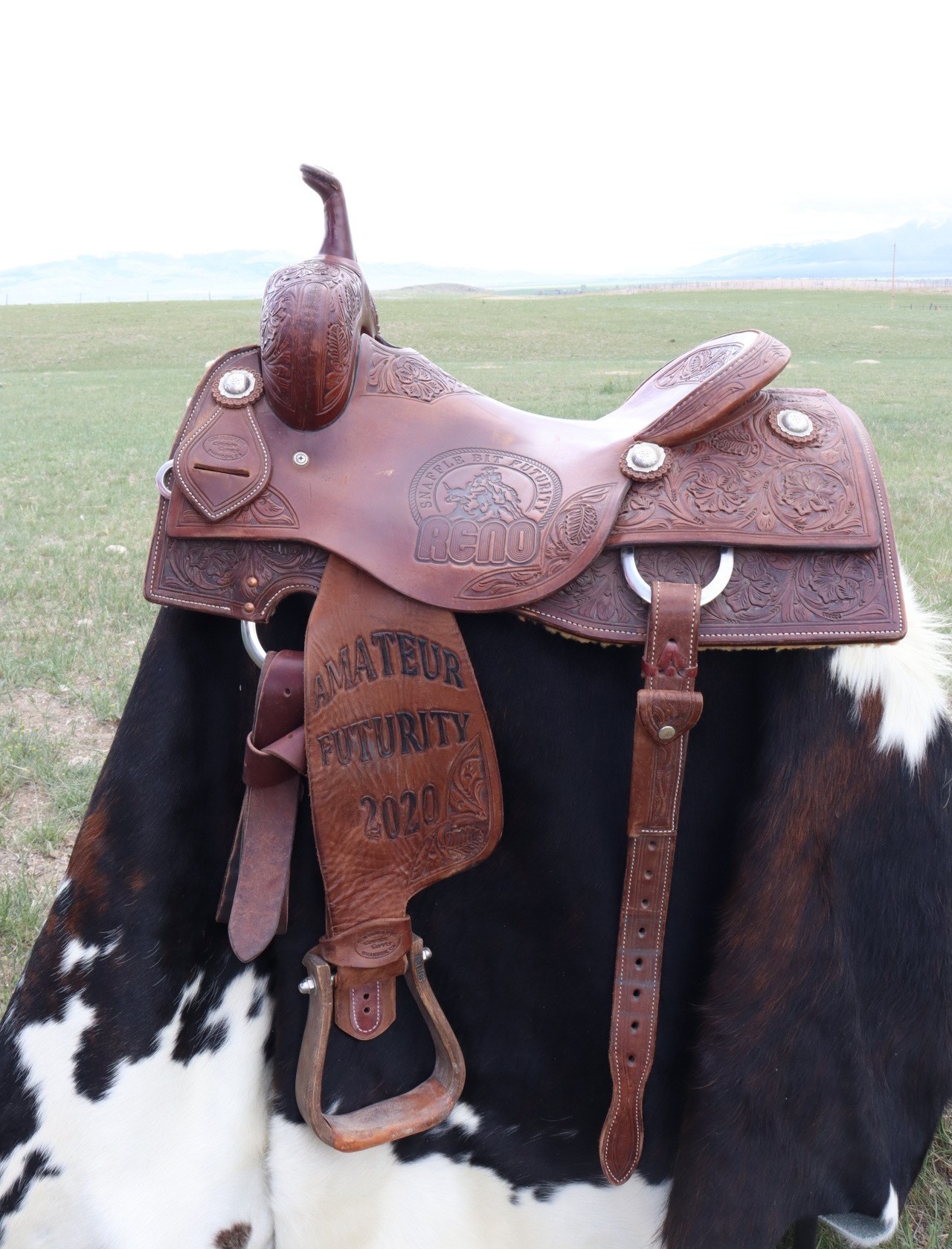 Floral Tooled Tom Block Cutter Saddle with 16" Seat.