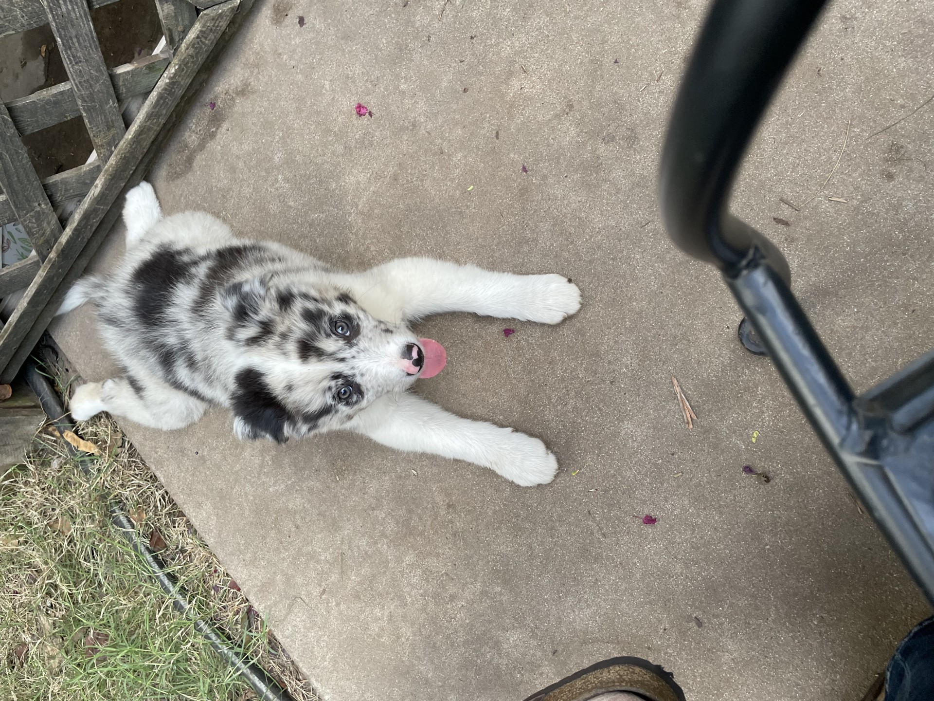 ABCA Border Collie pups. PRICE REDUCTION On male Merle. He comes from great working dog stock. Mirc, high point National Championship qualifier of 2019 grandfather and JR Red Hall of Fame 2018 great grandfather. $350. He has a rough coat and has had three sets of shots. He will be large and muscular. He has a beautiful blue Merle pattern and will be not only a great working dog but a beautifully marked dog.
