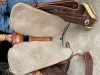 15 inch Olin Young Tree. 2 1/2" cantle. This saddle was made for tripping steers. Recently cleaned and oiled. New felt lining, new strings, new flank cinch , new flank billets, almost new latigo.
