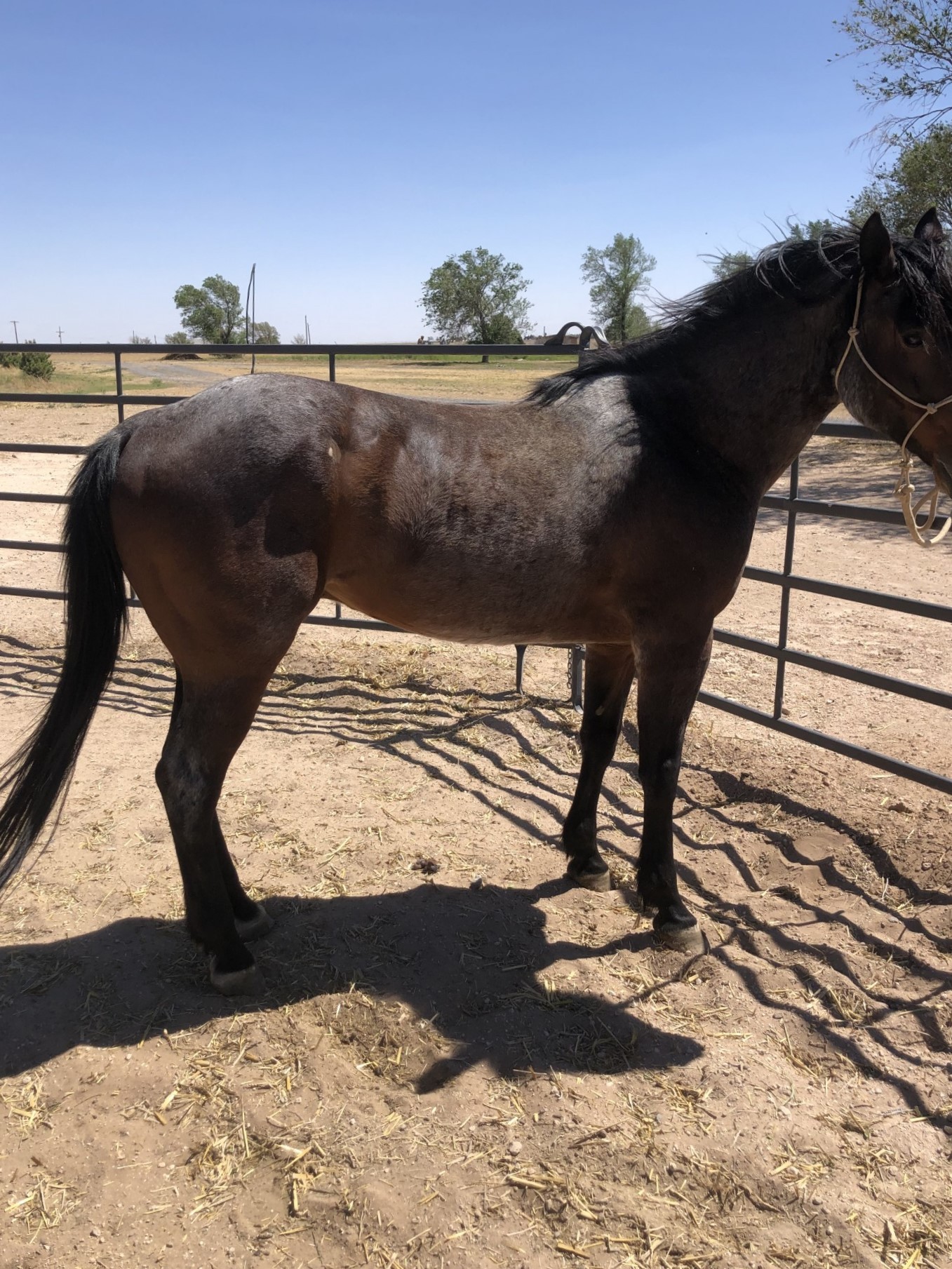 Nice bay roan for sale has pasture roped drug to the fire tagged calves this spring no buck after 2months off I think he has potential for heading or heeling.