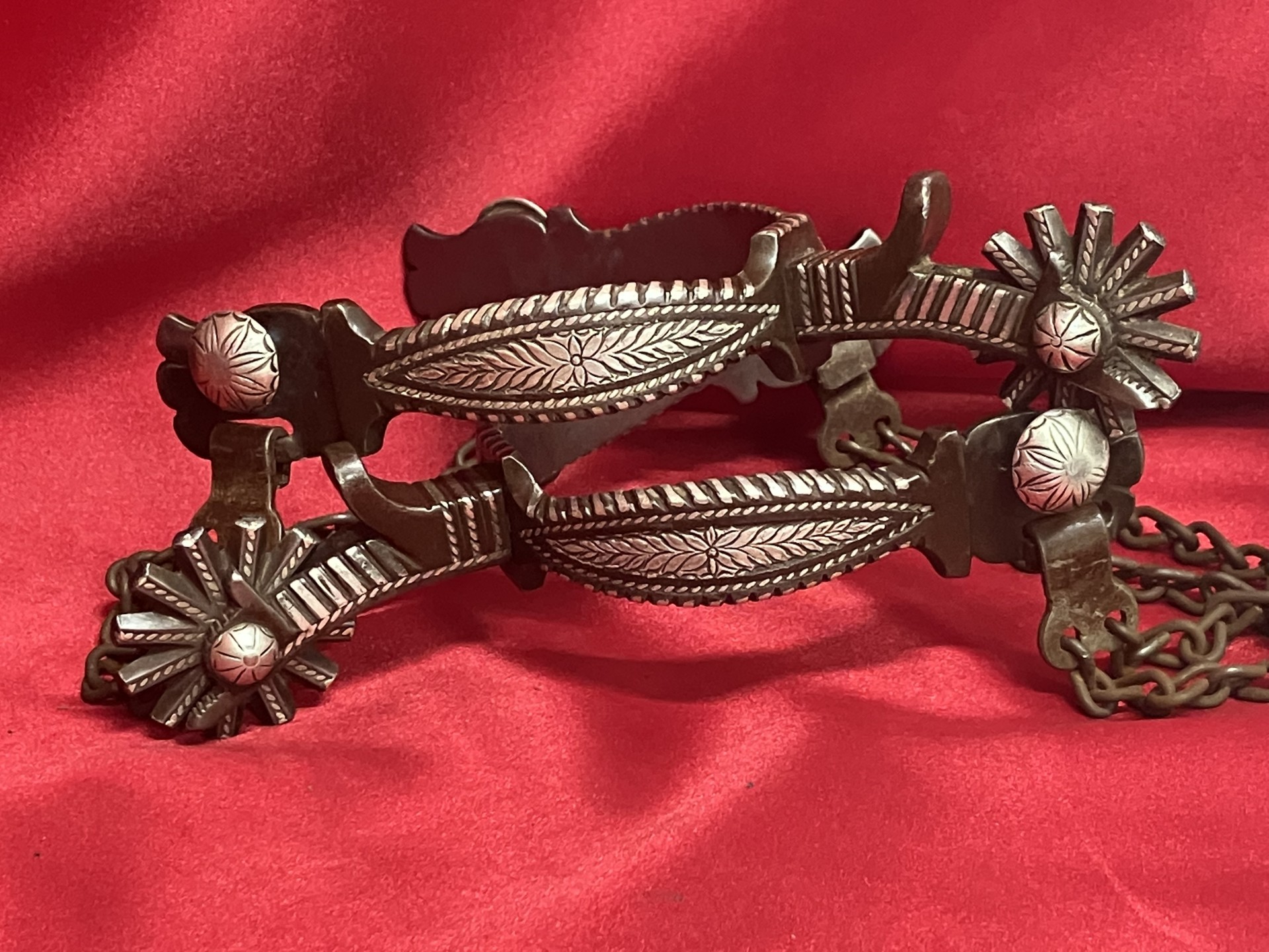 Handmade Bits & Spurs for Sale: FIELD DOUBLE INLAID SPURS SOLD #155268