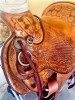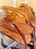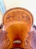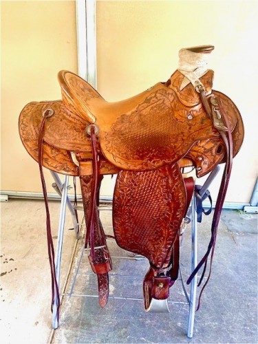 Beautiful Custom Marc Brogger Wade Saddle. Extensive Acorn tooling, 15" seat, excellent used condition, includes rear cinch, rope front cinch, and matching breast collar. $4,800 obo plus shipping