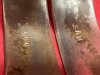 Sam Jenkins made and marked spurs in very good condition. Show limited wear. 1 15/16" rowels, 1 3/16" bands, 2 1/2" shanks, 3 3/16" heel openings that can be widened. His works have became collectible. I am not sure that he is even making these days. Nice pair. We pay shipping within the 48 states. We accept most forms of payment.