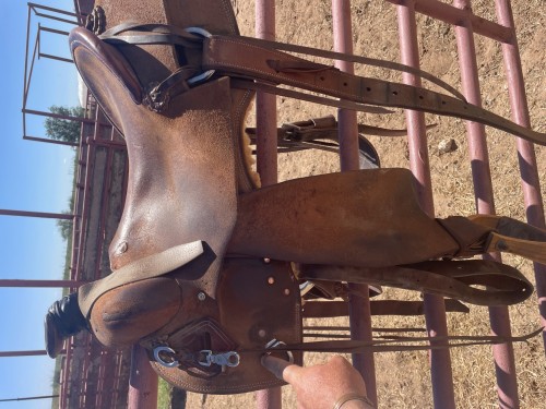 16 1/2 “ Paul summers on a buster Welch roper sweats a horse good. Good stout saddle