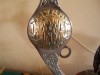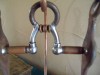 Texas maker Kerry Kelley trophy bit made for the Fort Worth Stock Show. Myles Brown of the R.A. Brown Ranch Texas won the bit. The conchos are 2" in diameter and stamped "F.W.S.S. Reserve Champion Ranch Horse 2018." It has a 5" mouthpiece. Shanks are 7-3/4" from bridle rings to rein ring.