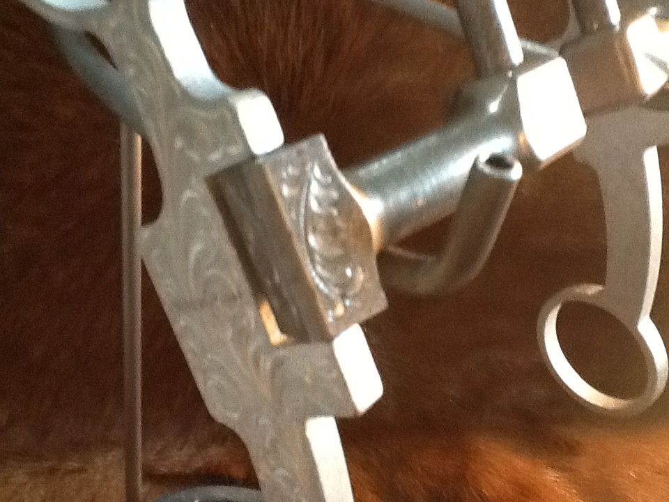Correction bit, machined bars, 7 3/4 inch shanks, 5 1/8 mouthpiece, 2 1/8 port, engraved alum shanks, engraved ends on the mouthpiece, includes shipping, any questions call. 817-304-3717