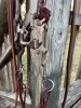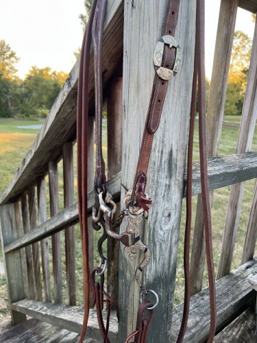 Lightly used mounted hingeport made by Robert Campbell w matching headstall buckle. Lots of nicely done detailed engraving. Like new and comes on an excellent handmade headstall w a good curb and new set a good heavy weighted end reins. Good rig. Everything in excellent condition ready to ride w no issues. $550 shipped in lower 48. Please text or call only. Thank you