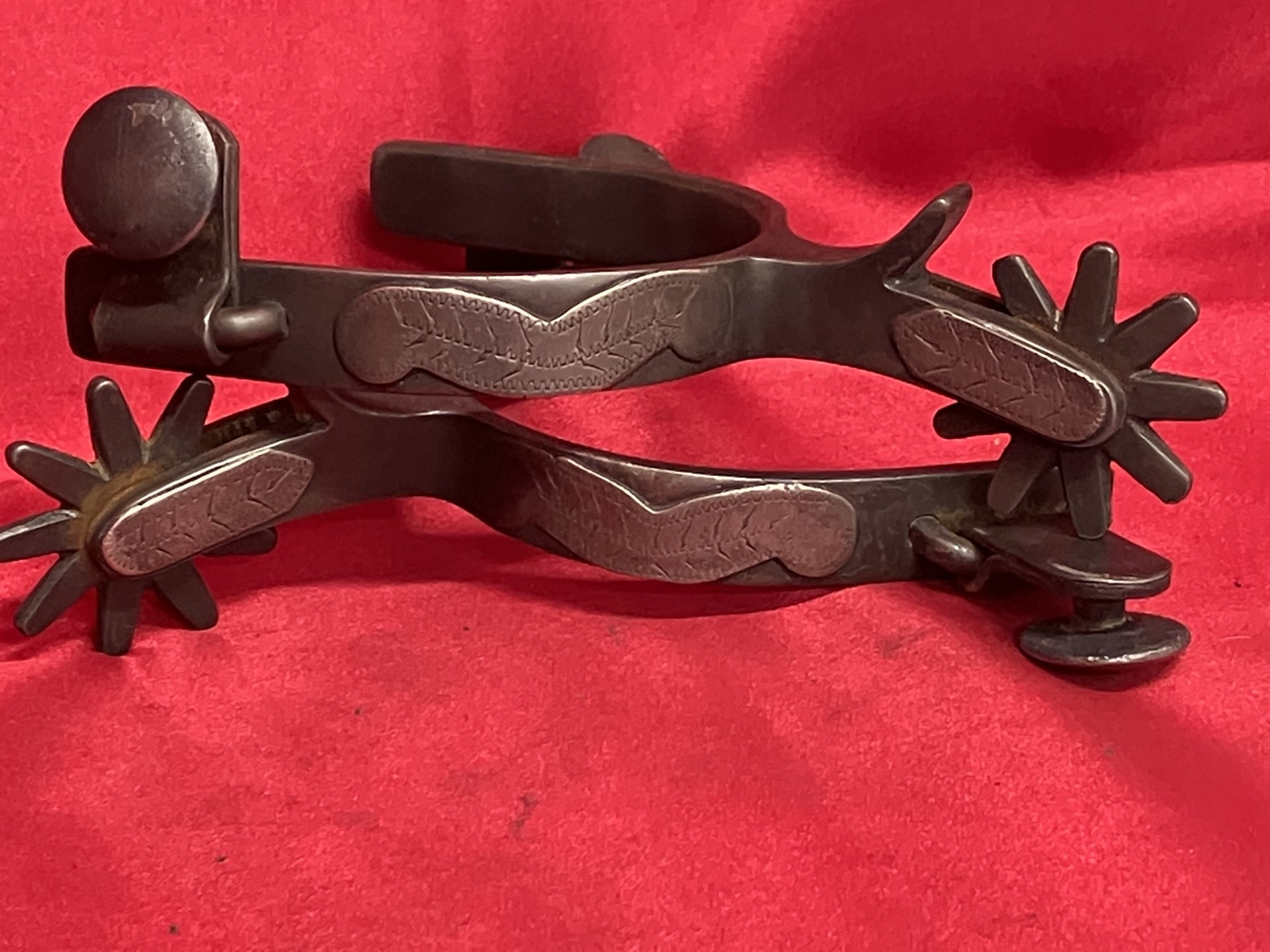 Edge marked CROCKETT spurs in very good condition to wear or add to a collection. 2" shanks, 1 1/2" rowels, 3" heel openings, 9/16" bandS Look all original. We pay shipping within the 48 states. We accept most forms of payment.