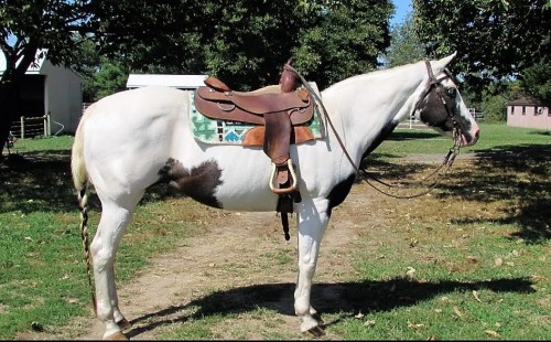 Arabella is drop dead gorgeous with 2 blue eyes and built like a tank.. She Is 12 years young and 15 hands. She is been there done that type. She will canter around a jump course and knows her leads. Trail ride deluxe type that goes anywhere you point her. On the trail she is walk along steady eddy. In the arena She will pick up the pace when asked. She is safe for anyone gentle and extremely friendly. We have put her to the test and have done everything from flags tarps big trucks you can’t spook this girl.