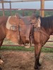 This is a 14” fully rough out roping saddle made by Drew Clark and built on a Doug Clark Roper tree. It was built in 2016 and is in great shape. It comes with a matching breast collar and back cinch. You can rope calves or steers out of it. $2300