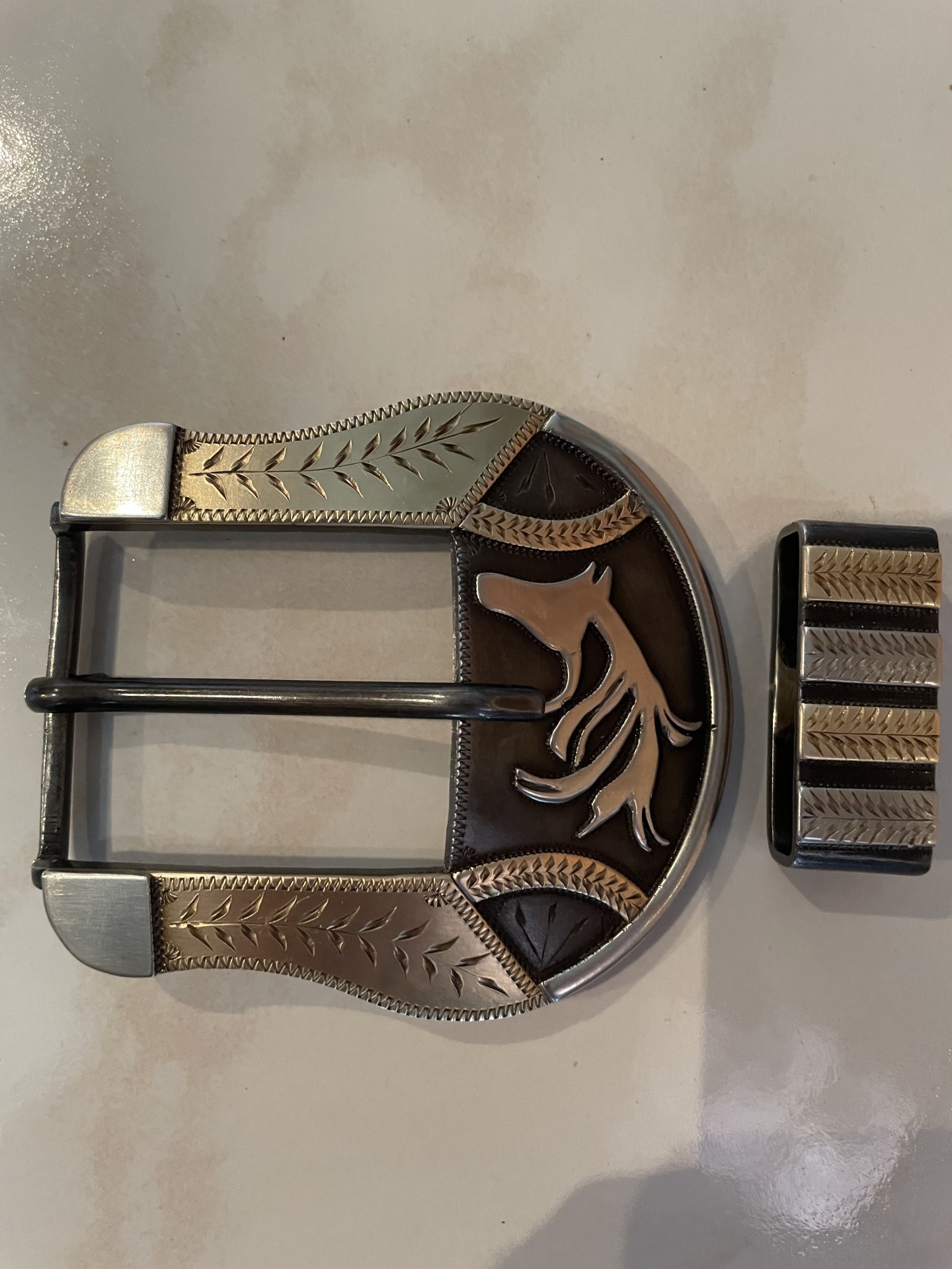 Handmade belt buckle and keeper by Ray Castleberry of Madill, OK. I am the maker of this buckle. The buckle measures 3 1/2” X 3”. It is made for a 1 1/2” belt. I accept PayPal or cash. Call or text.