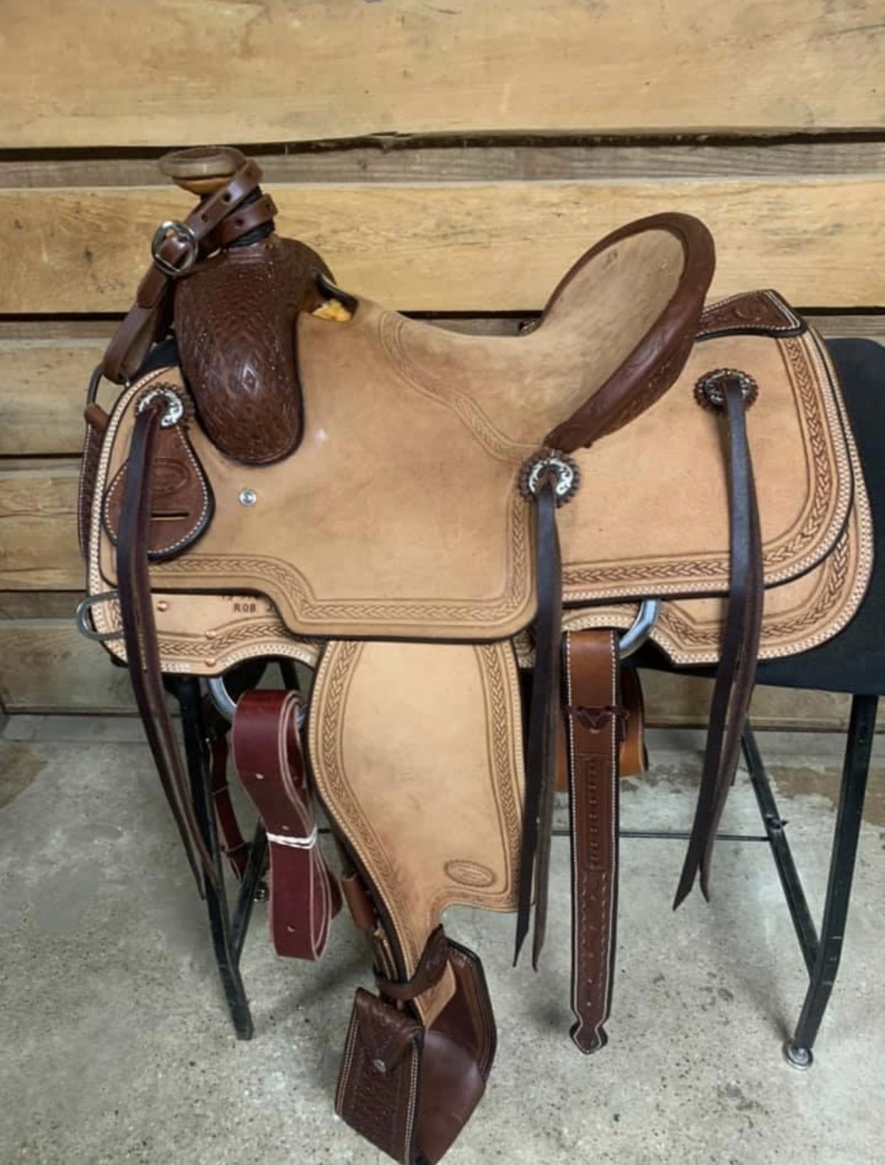 Very nice USED Trent Ward Platinum roping saddle, 14 inch seat, made in 2021. Shipping included in price. The sale price is $2,850