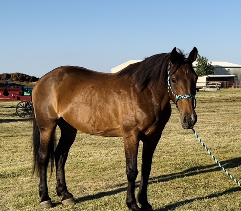 Zena is also broke to ride and actually rides well. She will walk, trot, lope as asked. She’s never really had much arena time but has been ridden all over outside. We’ve even had beginners on her. She’s been ridden on the ranch to help gather and pen cows. Take off and ride pastures looking for strays on her. You can push cows up the alley and load trucks on her. You can ride her for hours checking fences on her.