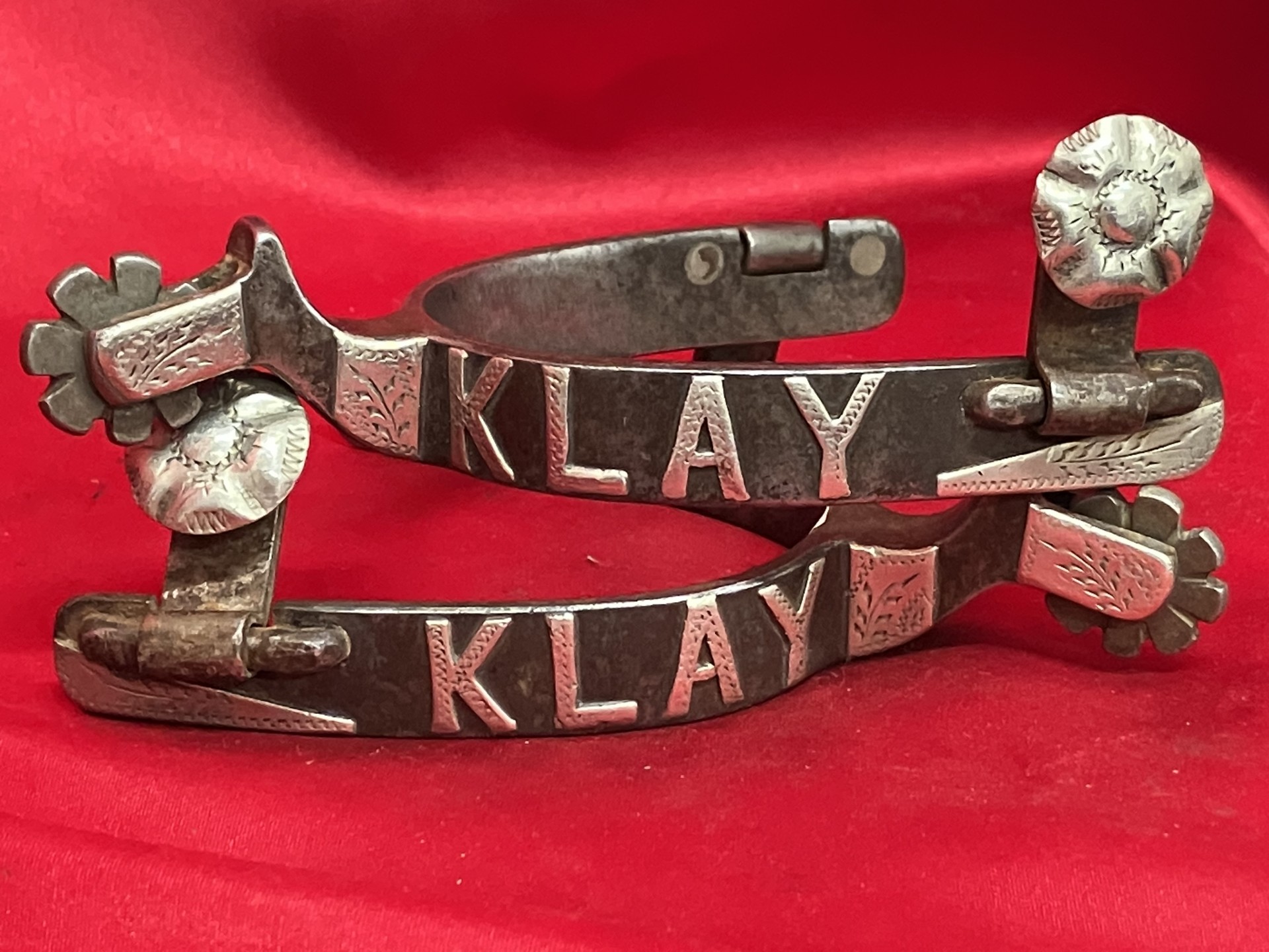 Jerry Cates made roping style spurs marked CATES 931 and feature 1 5/8" shanks, 15/16" rowels with a little play, 3 1/8" heel openings that can be spread, and 5/8" bands. Good using condition. I know a man that can replace the K with a C and it will look right. The whole name can be changed. Nice style on this good pair by the hall of famer. We pay shipping within the 48 states. We accept most forms of payment.