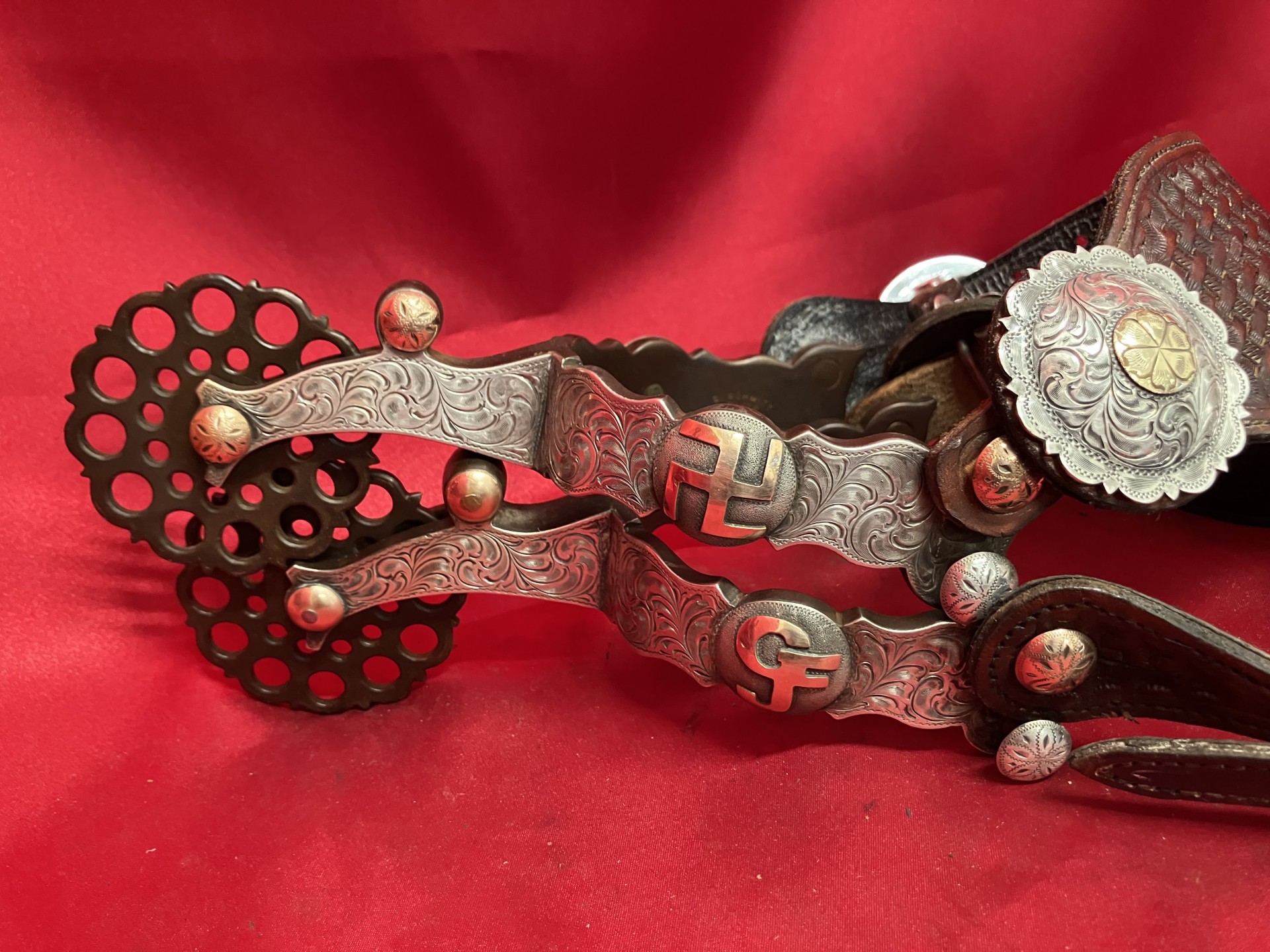 Handmade Bits & Spurs for Sale: STEVE SCHMITT DBL MTD SPURS W/CONCHOS SOLD #160767