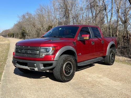 This Ruby Red Raptor is only available on the Special Edition Package which also includes special leather seats and wheels. This truck also has Heated and Cooled Front Seats, Navigation, Back Up Camera, Sunroof, Tailgate Step, and Spray In Bedliner to go along with all the other Raptor Goodies.
