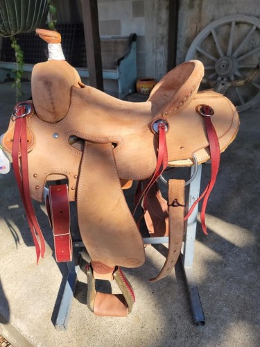 New 14 1/2" HR seat rig, full roughout, stainless conchos, rings n strings, top quality n built for the working cowboy!