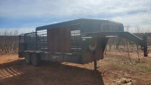 20x6 gooseneck brand halftop trailer was went through 3 years ago reinforced frame axles etc. Has winch and ramp. The winch has a wireless remote and solar, ready for electric jack. 2 movable cut gates. Lifetime floor. No title