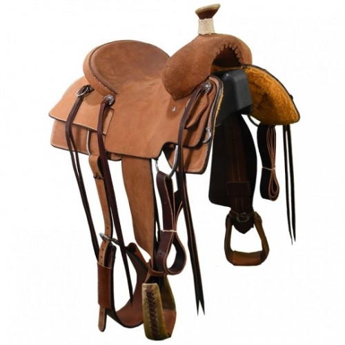 Stirrups: 3" Rawhide Covered Deep Ropers