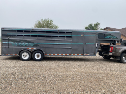 Diamond D 5-horse with front tack. Saddle racks, blanket bars and bridle hooks. Dividers for 5 horses, tie rings, rubber floor mats and poly lining on interior walls. Floor is in very good condition, all running lights, brake lights, and blinkers work. Has been fitted with a new modern large light plug. Torsion axles, tires in good condition. This trailer pulls really well, we’ve used it to haul cattle and horses. The paint is a little rough on the outside but there’s a lot of years and use left in this trailer. Text me for more photos.