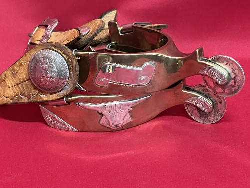 Handmade Bits & Spurs for Sale: JERRY WALLACE DOUBLE MOUNTED W/STRAPS SOLD #168122