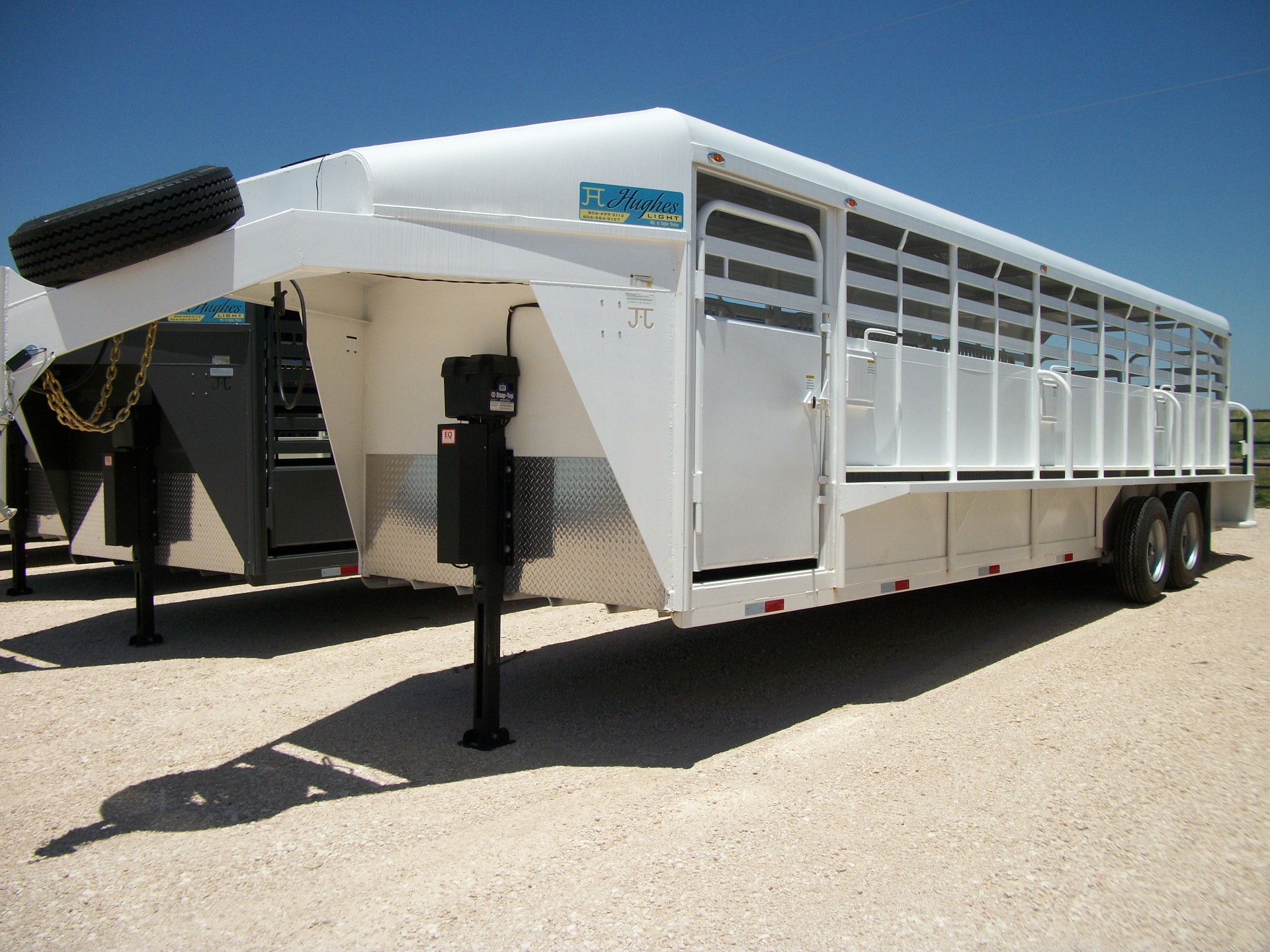 Electric Jack, Double Escape Doors, 3 Solid Center Gates, Butterfly Rear Gates, Cleated Rubber Floors, 2-8K axles, 17.5” rims with 18 ply tires