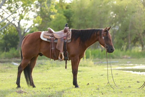 Lopes around quiet, get the gate, rides out alone, saddle at the barn and go. Big and stout enough to take a pull and go all day.