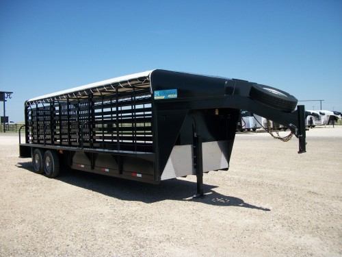 Electric Jack, 2 Solid Center Gates, Butterfly Rear Gates, Cleated Rubber Floor, 2-7k Axles, 16” Rimes with 14 ply tires. Trailer has never been used.