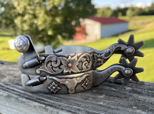 Another dandy pair from John Jennings. Lots of engraving in both metal and silver. All four buttons mounted. Nice set here. New condition. $1,200 shipped n lower 48. Please text or call only. Thank u