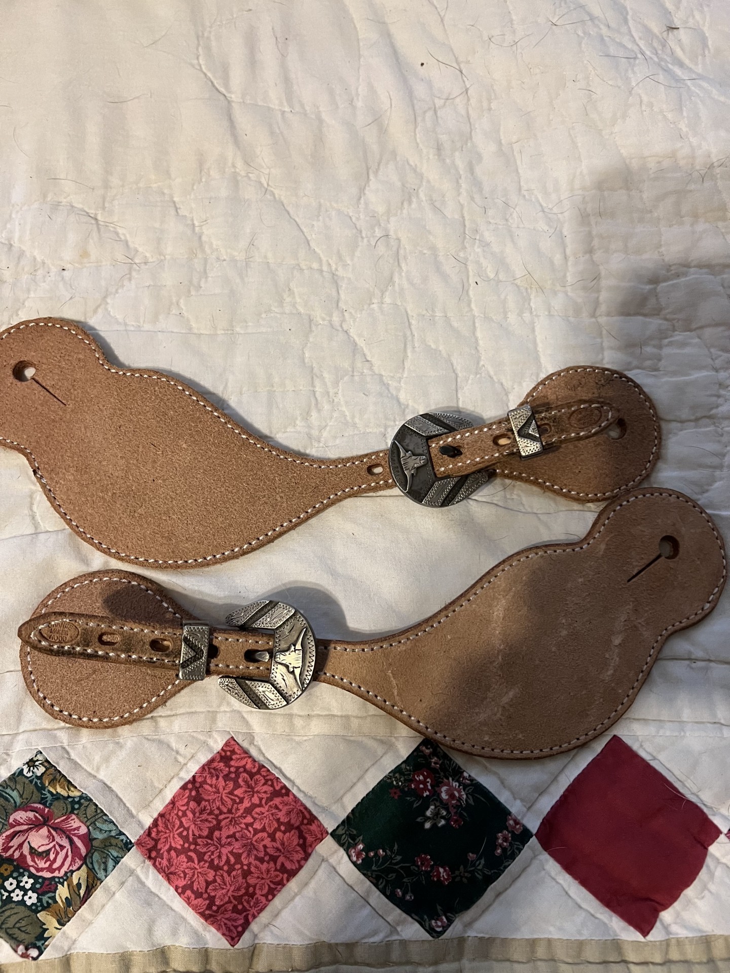 New Chance Hood lined and stitched roughout spurleathers with David Hunt buckles. $225 shipped in lower 48. Please text or call only. Thank u