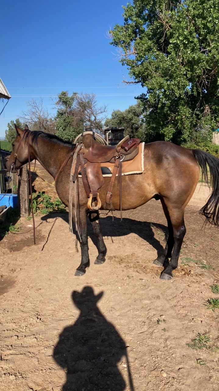 Ace is very gentle and well broke. Great rope horse, moves his feet well, not spooky, reactive to your feet, good stop, and soft in the mouth. He would be great for any level rider from a kid who is wanting to go rope outside or someone who is wanting to have success in the roping pen. He is a finished ranch horse and has done every job there is to do. He has spent his whole life on the ranch, has good feet, is an easy keeper, and is guaranteed sound. Come try him out. located in Fort Lupton Co.