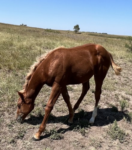 Registered APHA weanling filly for sale. This filly is built right, great mind and is in your pocket. She has been imprinted and handled daily. She will lead, pick up all four feet and load at weaning time in October 2023. This filly will excel in any direction you want to take her.