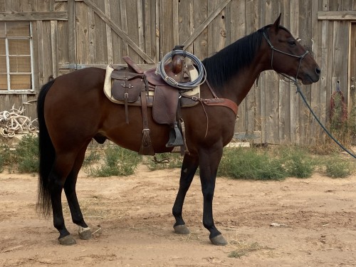 Started as a reiner. Fancy broke. Performs all aspects of ranch work. Walks out, nice trot and lope. Has plenty of run, will come back to you without a fight. Go out alone or with friends, he doesn’t care. No buck, bolt, bite or kick. Let him sit, he’s the same when you start back. Easy handle, shoe and bathe/groom. Up to date on shots and dental work.