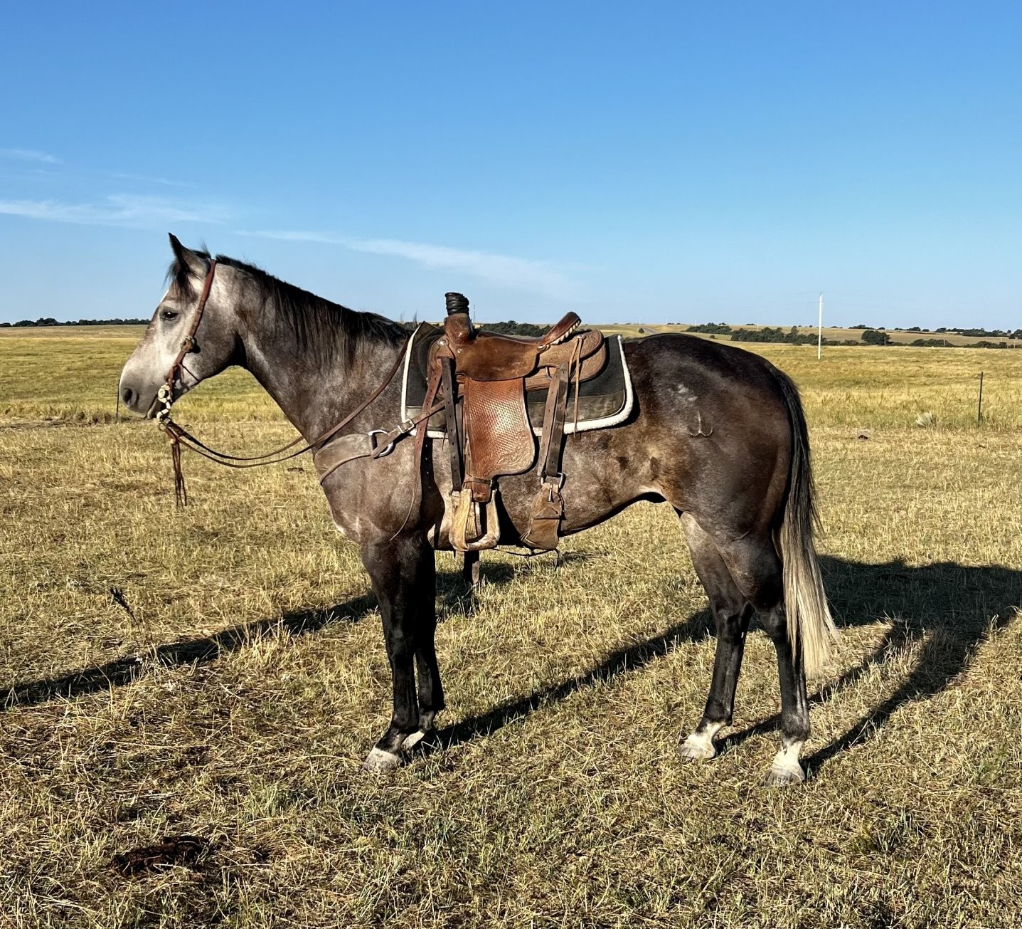 Elvis is safe for anyone. Has had an extensive amount of ranch chores done and is capable of any job. Elvis has been hauled to a few jackpots heading and taken it great. A true fit for a family of ropers or a crew of upcoming cowboys.