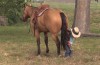 we bought George as a weanling from a breeder we have had many good horses from. George was our first pick out of 20+ colts, he was a standout!  A "One owner horse", he shows the consistency in riding & handling in his confidence in us. George will be highly valued by a family who wants a responsive/ light to the aids ride, combined with the dependability of being a seasoned ranch working horse. He is happy to go slow & easy, but is responsive enough to move out freely if you ask. Curt appreciates his talent on cattle & born to work attitude; Anne enjoys his athletic ability & intelligence that make him fun to learn advanced training with; sidepass, halfpass, haunches in & a best partner in starting colts in the round pen. He is a blast to ride! He learns what you are doing & works to do his part. Alice (6 yrs) loves to ride him because he is soft, responsive & doesn’t get lazy. She can get on him by herself, ride him bareback, open & close gates, sidpass, teeter-totter, planks, bridge, work cows all day in any kind of brush & terrain. We can send Alice out on her pony & she can catch George out at pasture (no grain) & bring him back to the barn. When Anne goes out she just rides him back in a halter, bareback. Stays broke with time off (Alice can get on him without adult warm-up), perfect ground manners, loads himself in the trailer & is a very personable horse, particularly asking for attention from his people. George is a VERY easy keeper, he has never coliced, or had any soundness issue, we have a full set of current Xrays available. He has exceptional hoof quality & he has never required shoes, we just keep him trimmed.