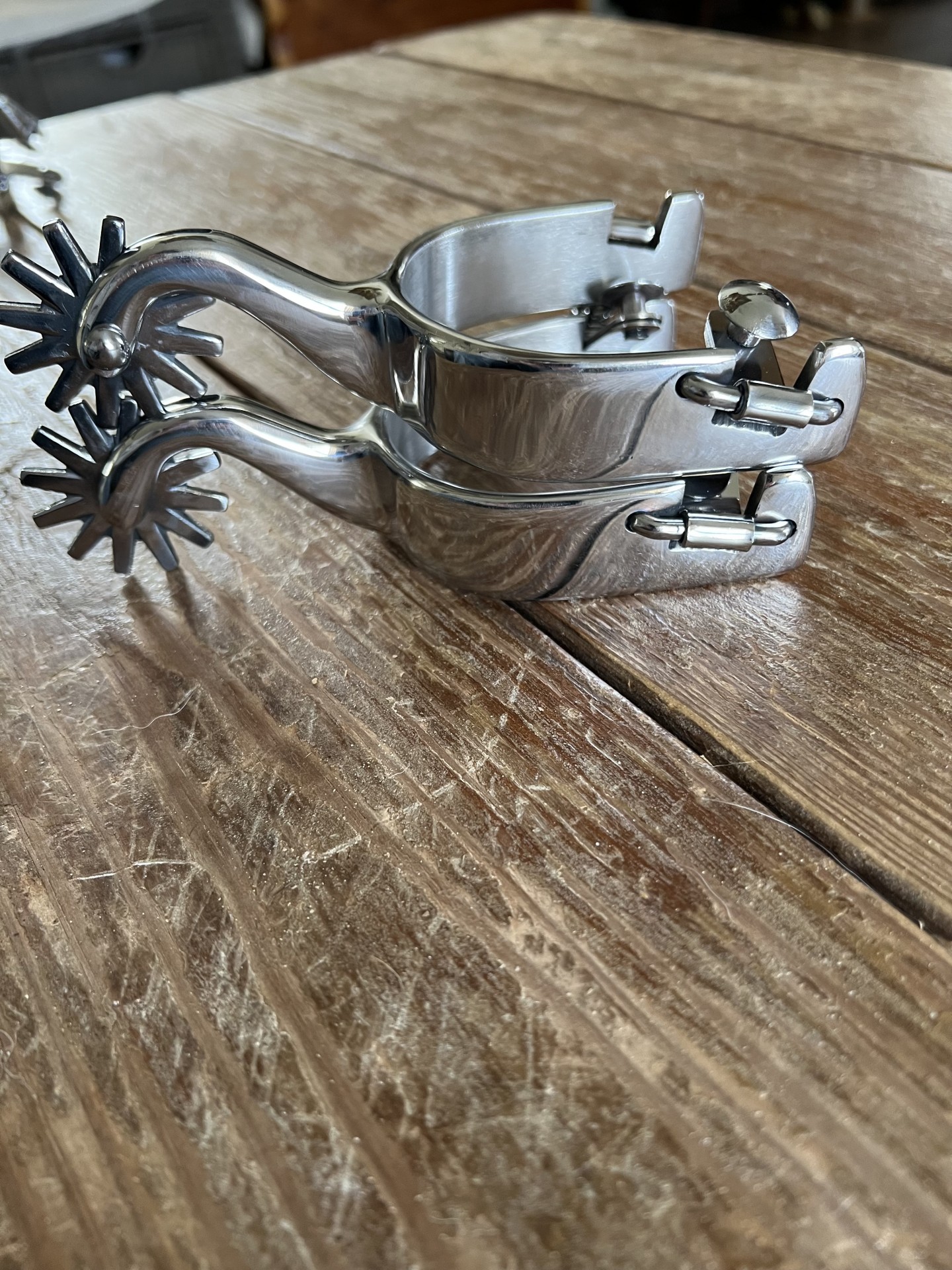 Really good set of spurs handmade by Travis Finley of Slingin Shanks. He makes alot of PBR and NFR riders spurs. These spurs are very well made to last. Travis told me he would be glad to mount these w brand, initials or whatever if ur interested for very reasonable price. If u want a great using pair that won’t break u, here u go. $250 shipped in lower 48. Please text or call only. Thank u