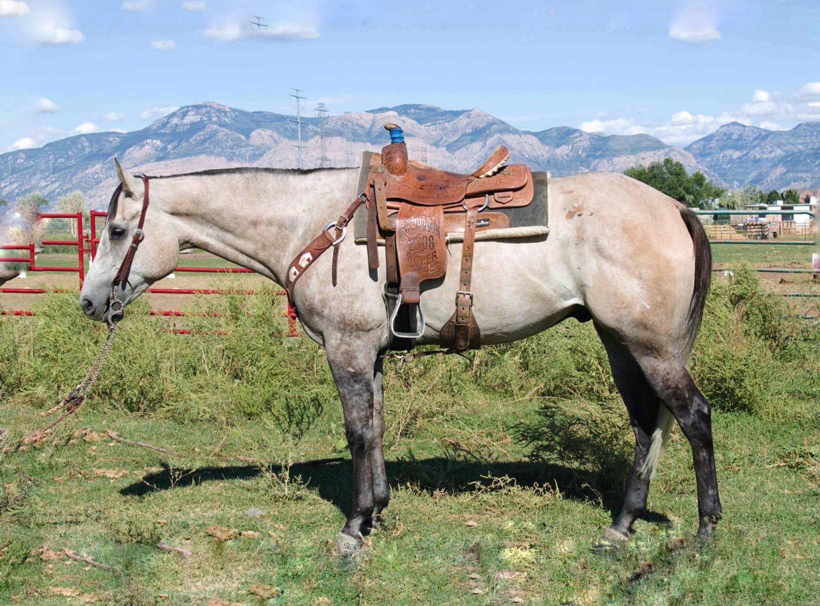 Doug, is an exceptional all-around horse. Doug has been started on the head side, as well as lightly patterned on the barrels. He’s the go all day type of horse. The perfect combination of gentle, but still has a motor to work. Doug comes from performance bloodlines, he has the potential, and the handle to go with it. Doug has seen it all, from rocky hillsides to long days in the roping pen. If you want a horse that can go out and do anything and everything, Doug is your guy!