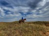 We have gathered pastures of cows on him and he trailed them great. He trots, lopes, stops, backs up, he does need work on neck reining but he’s getting there.