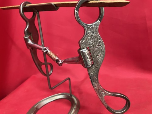 LEON HUGHES bit with his LH mark, in unused condition with 6 3/8" cheeks and 5" mouth. He does some very good engraving and makes bits for some the top horsemen going down the road. We pay shipping within the 48 states. We accept most forms of payment.