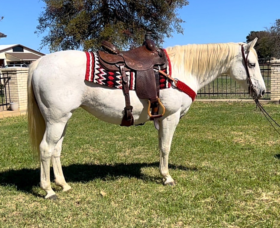 Dixie is a very pretty gray mare that has that wow factor. She’s 14.2, well made, has a gorgeous head with a big kind eye. This girl is sane, kind, gentle and will suit a large variety of riders from young to old. She is the kind of horse that absolutely loves people and will nicker when she sees you coming. She is a horse that does not require everyday riding to stay gentle.